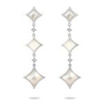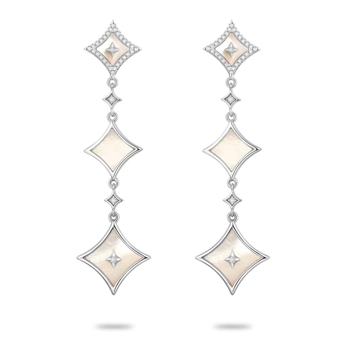 These earrings are handcrafted from sterling silver, mother of pearl stone and microset with white cubic zirconia, anti-tarnishing and anti-allergic.
